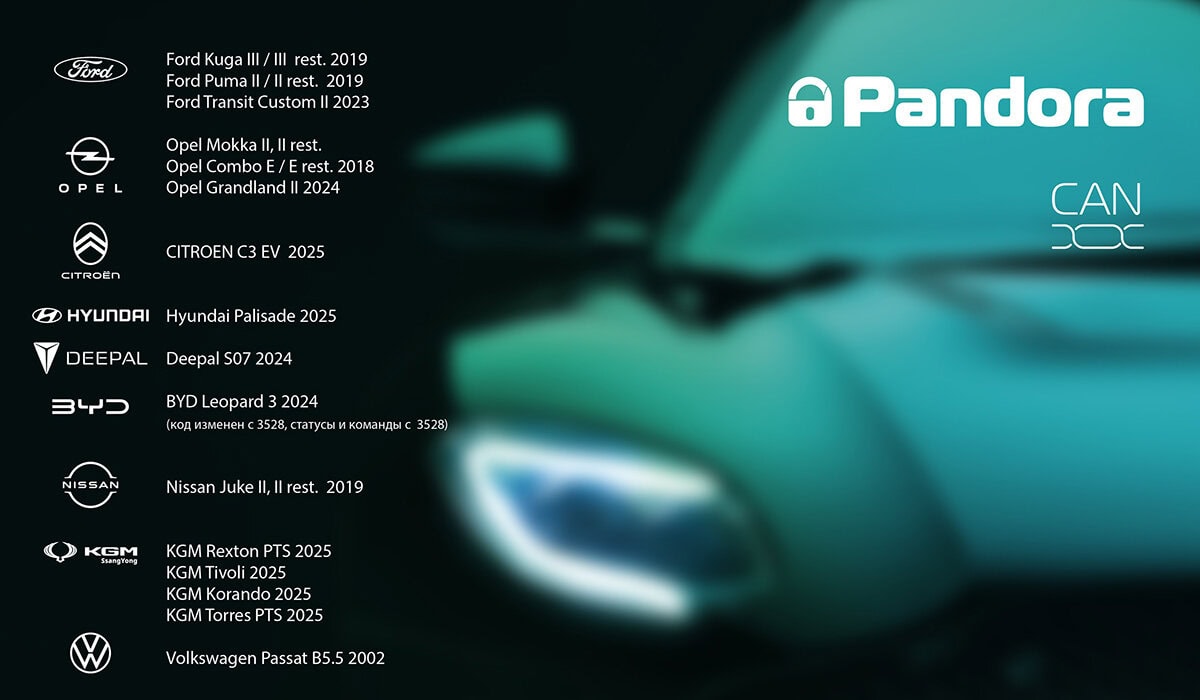 Свежая версия программного обеспечения увеличивает возможности работы охранных систем Pandora с современными автомобилями, в том числе с современными моделями автомобильных марок, официально не представленными на российском рынке сегодня, но всё же встречающимися.